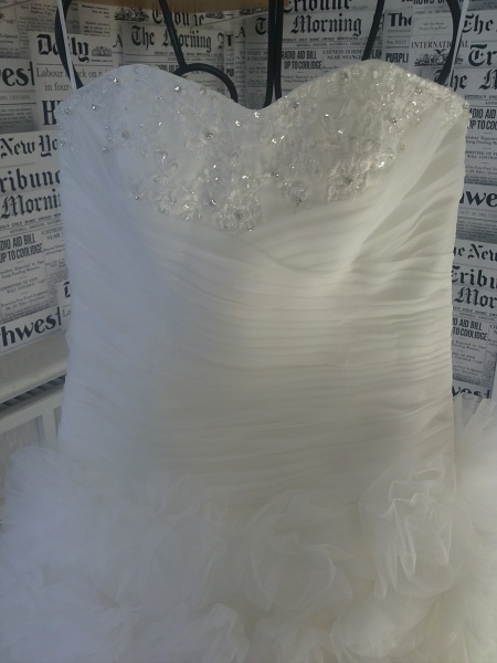 Har precis fått min klänning! :) Beställde från shinyweddingdresses.com den 15 januari. De sa den skulle komma i början av mars. Den var nedsatt från 441 dollar til 187 dollar. Gjorde inga ändringar på klänningen. Den ser ut precis som den gjorde som jag provade i en brudbutik, förutom att den behöver strykas till. Kan tyvärr inte ta några bilder på den idag men det är denna: www.shinyweddingdress.com/oreasposa-2012-collection-style-l579-p-296.html