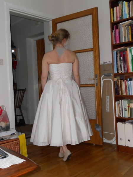 Den ser väldigt fin ut även i taft. Men hur fasen kan de ta betalt för siden och sedan INTE sy klänningen i det??!!!