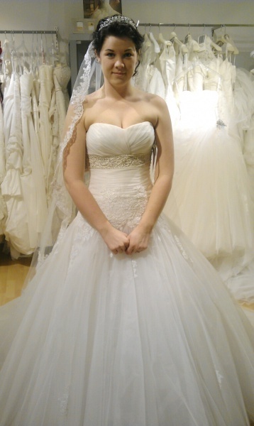 Vem av er har satt upp ett foto rätt nyligen, där du provar en klänning. Klänningen är i sjöjungfrumodell, i livet var det nå bling bling. Ärmlös har jag för mig. Kjolen var i nå organza/tyll aktigt tyg.... (är inte så bra på tyger). Har för mig att överdelen av klänningen var täckt av spets.